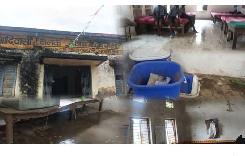 जिससे आने वाले समय में कई तरह के बीमारी बैक्टीरिया,खुजली,उल्टी दस्त जैसे कई बिमारी होने की संभावना स्पष्ट रूप से झलक रही है। संबंध में हमने आश्रम में रहने वाले बच्चों से जानकारी ली तो उन्होंने बताया कि आश्रम में रहने का मन नहीं लगता है लेकिन शिक्षा के लिए मजबुर हैं, इसीलिए रहने को मजबूर हैं। और रात में बरसात और छत का टपकना को बच्चों ने जब बताया तो आंखें नम हो गई। उन्होंने कहा सर, जब रात में सोते समय जब पानी गिरता है तो हम सो नहीं पाते पानी के टपकने से हमारी सारे बेड गद्दे गीला हो जाता है। कभी बेड को इधर खसकाते तो कभी ऊधर खींचते हैं। लेकिन हर जगह टपकता है तो फिर किधर करेंगे। आगे उन्होंने बताया कि रात को एक कोने में खड़े होकर रात गुजार लेते हैं। और बदबू से भी परेशान हैं। वे जितना बन पड़े खुद साफ सफाई करते हैं। बालकों द्वारा बताए गए दुःख भरी व्यथा और वहीं जिम्मेदार अधिकारी जनप्रतिनिधि वाह रे जिम्मेदार प्रशासन। एक तरफ सरकार स्वच्छ जल जीवन मिशन, स्वच्छ भारत,बेहतर शिक्षा,स्वास्थ्य भारत, निरोग भारत,का नारे घर घर लगा रही।