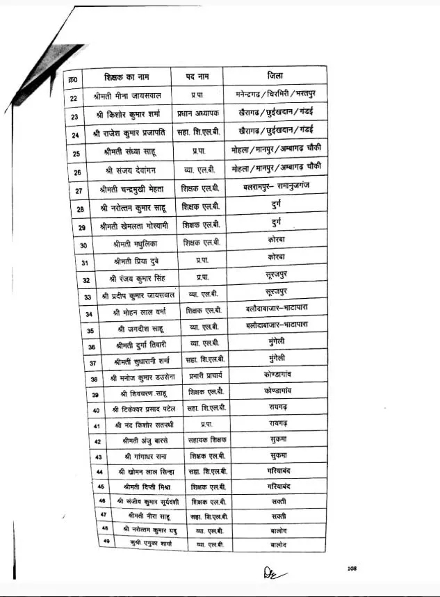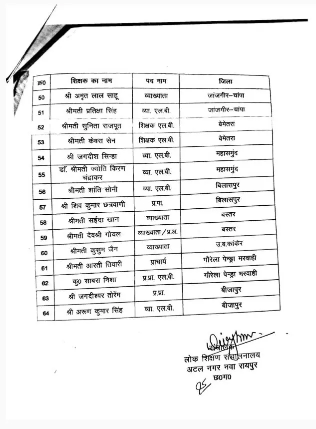 रायपुर :- प्रदेश 64 शिक्षकों को शिक्षक दिवस के मौके पर राज्यपाल रामेन डेका सम्मानित करेंगे। पुरस्कार प्राप्त शिक्षकों के नाम इस प्रकार है।