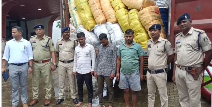 दुर्ग। दुर्ग पुलिस ने नशे के खिलाफ चलाए जा रहे विशेष अभियान के तहत एक बड़ी कार्रवाई को अंजाम देते हुए एक अंतरराज्यीय गांजा तस्कर गिरोह का भंडाफोड़ किया है। पुलिस ने लगभग 60 लाख रुपये का 388 किलो से अधिक गांजा जब्त किया है। इस कार्रवाई में एक कंटेनर, नकदी और अन्य सामान सहित कुल 1 करोड़ 53 लाख रुपये का माल जब्त किया गया है। पुलिस ने इस मामले में तीन अंतरराज्यीय तस्करों को भी गिरफ्तार किया है।