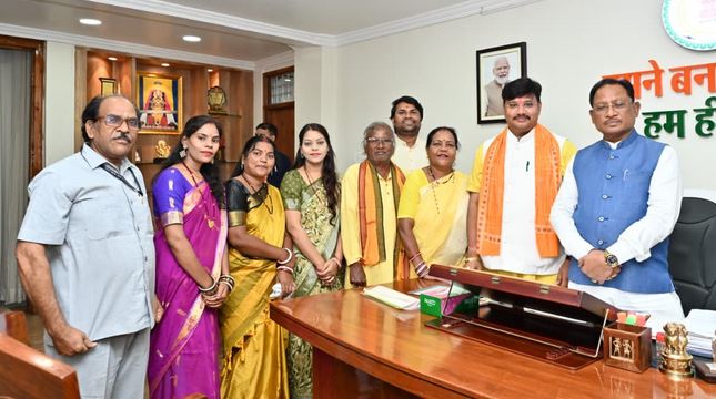 दुर्ग। भिलाई। अंतरराष्ट्रीय ख्याति पण्डवानी गायिका पद्मश्री उषा बारले के नेतृत्व में, मुख्यमंत्री निवास में छत्तीसगढ़ के मुख्यमंत्री श्री विष्णु देव साय से पण्डवानी परिवार की ओर से सौजन्य भेंट की गयी । अंतर्राष्ट्रीय कलाकार दिवस के उपलक्ष्य में पण्डवानी महासम्मेलन का न्योता देकर छत्तीसगढ़ स्तरीय पण्डवानी कलाकारों का समागम आयोजित किये जाने पर विस्तृत चर्चा, मुलाकात के दौरान की गयी ।
