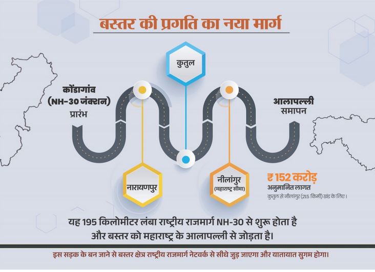 यह उल्लेखनीय है कि कुतुल, नारायणपुर जिले के अबूझमाड़ क्षेत्र में स्थित है और कुतुल से महाराष्ट्र सीमा पर स्थित नीलांगुर की दूरी 21.5 किलोमीटर है। यह नेशनल हाईवे 130-डी का हिस्सा है। इस सड़क का निर्माण टू-लेन पेव्ड शोल्डर सहित किया जाएगा।