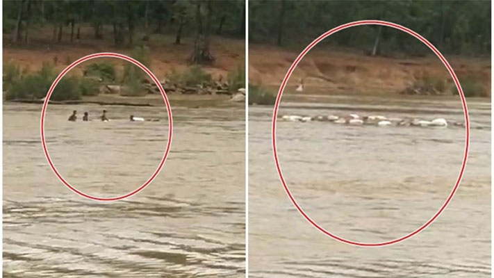 कांकेर। छोटेबैठिया थाना क्षेत्र के अंतर्गत आने वाले प्रवाहित कोटरी नदी पुलविहीन होने के कारण शुक्रवार को पांच लोग नाव से नदी पार रहे थे अचानक ही तेज बहाव में नाव पलट गया और जैसे-तैसे सभी लोगों ने अपनी जान बचाई। लेकिन इस नाव में एक व्यापारी दो लाख रुपये का किराना सामान लेकर बैठा था जो बह गया।