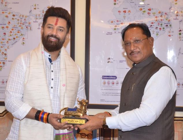रायपुर , मुख्यमंत्री श्री विष्णुदेव साय ने आज नई दिल्ली में केंद्रीय खाद्य एवं उपभोक्ता मामलों के मंत्री श्री चिराग पासवान से उनके कार्यालय में सौजन्य मुलाकात की। इस दौरान छत्तीसगढ़ से जुड़े अनेक जनहित विषयों पर रचनात्मक और सार्थक चर्चा हुई। मुख्यमंत्री श्री साय ने विशेष रूप से राज्य में खाद्य सुरक्षा, कृषि-आधारित उद्योगों और फूड प्रोसेसिंग सेक्टर से जुड़े महत्वपूर्ण मुद्दों पर ध्यान आकर्षित किया।