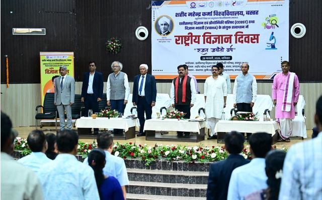 रायपुर, राष्ट्रीय विज्ञान दिवस के अवसर पर जगदलपुर में आयोजित कार्यक्रम में उप मुख्यमंत्री श्री विजय शर्मा मुख्य अतिथि के रूप में शामिल हुए। यह समारोह शहीद महेंद्र कर्मा विश्वविद्यालय, छत्तीसगढ़ विज्ञान एवं प्रौद्योगिकी परिषद तथा विज्ञान भारती के संयुक्त तत्वाधान में कृषि महाविद्यालय के सभागार में आयोजित किया गया। कार्यक्रम में विज्ञान के क्षेत्र में नवाचार, शोध एवं वैज्ञानिक सोच को बढ़ावा देने पर विशेष जोर दिया गया।