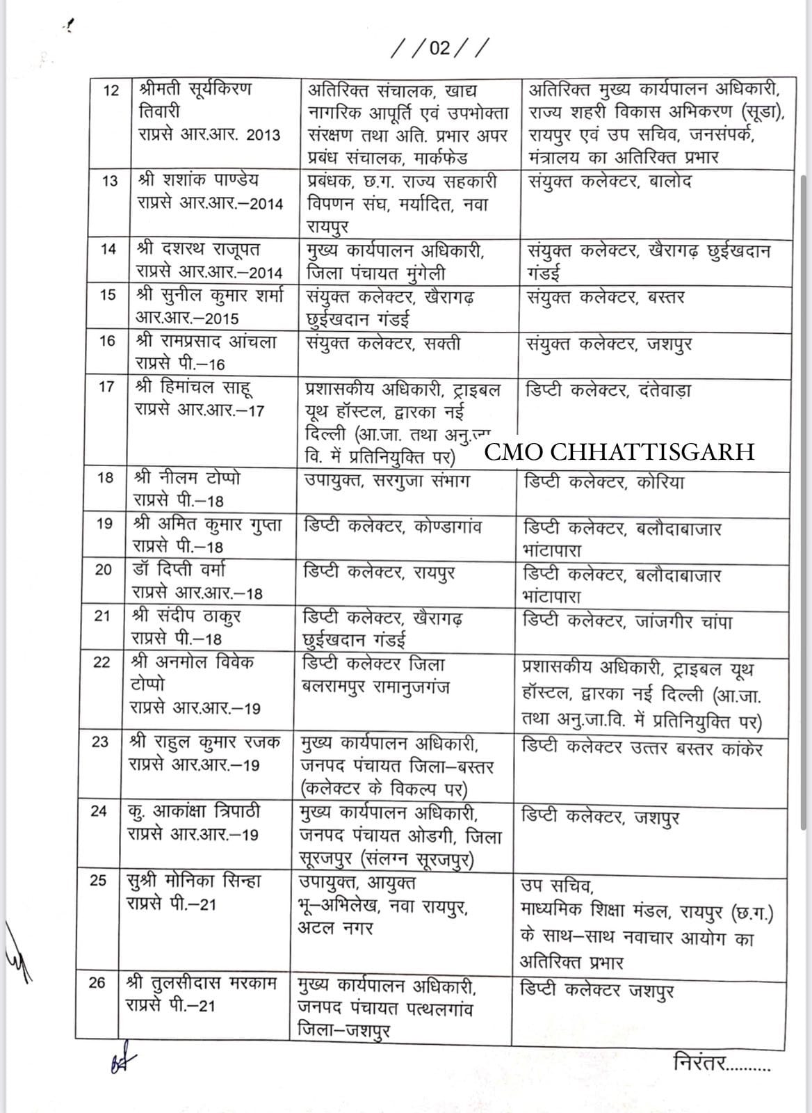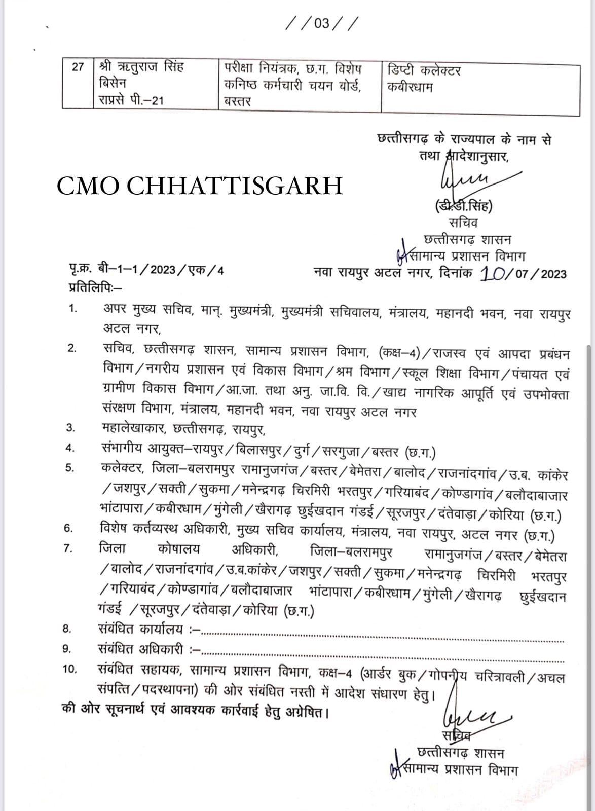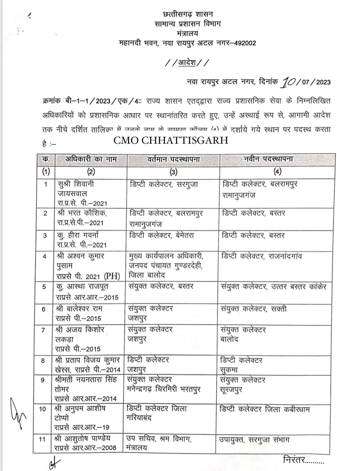 छत्तीसगढ़ विधानसभा चुनाव 2023 से पूर्व लगातार अधिकारियों के तबादले किए जा रहे हैं। इसी क्रम में शासन ने फिर बड़े पैमाने पर राज्य प्रशासनिक सेवा के अधिकारियों का ट्रांसफर किया है। इसमें कुल 27 डिप्टी कलेक्टर्स को नई जिम्मेदारी दी गई है। इस संबंध में सामान्य प्रशासन विभाग, मंत्रालय, महानदी भवन ने आदेश जारी कर दिया है।