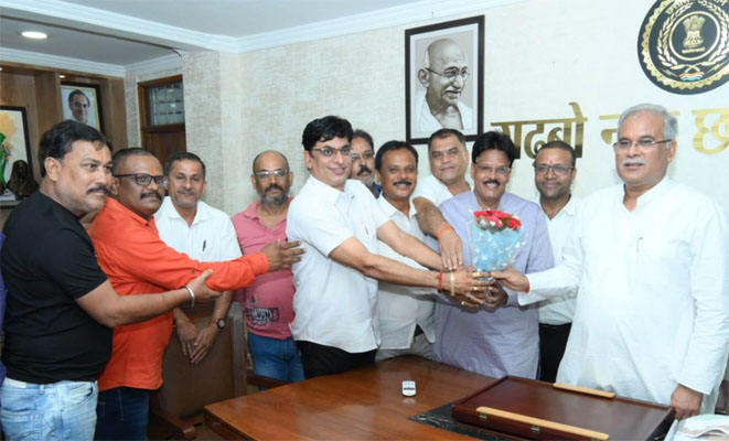 मुख्यमंत्री श्री भूपेश बघेल से आज शाम यहां उनके निवास कार्यालय में ब्राह्मण समाज बालोद के प्रतिनिधिमंडल ने सौजन्य मुलाकात की। मुख्यमंत्री से प्रतिनिधिमंडल ने विभिन्न सामाजिक मुद्दों पर चर्चा की और जनकल्याणकारी शासकीय योजनाओं द्वारा राज्य में चहुमुंखी विकास के लिए किए जा रहे प्रयासों के लिए मुख्यमंत्री का आभार जताते हुए उन्हें पुष्पगुच्छ भेंट किया । इस अवसर पर ब्राह्मण समाज बालोद के अध्यक्ष श्री अटल दुबे, श्री संतोष दुबे, श्री कृष्णा दुबे, श्री विनोद शर्मा, श्री प्रमोद दुबे, श्री अरुण उपाध्याय, श्री धीरज उपाध्याय सहित अन्य लोग उपस्थित थे।