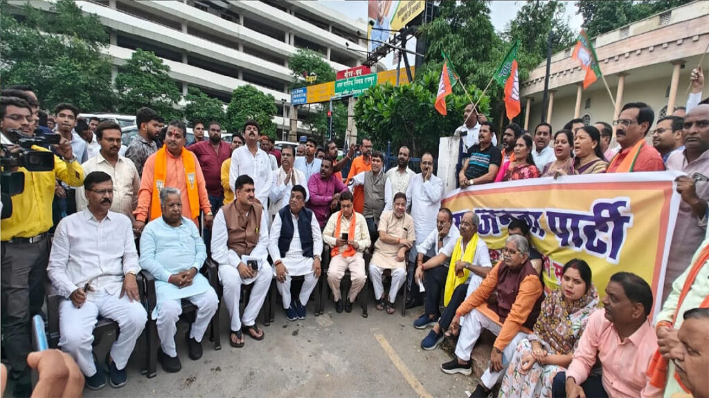 रायपुर के विधानसभा रोड पर एससी-एसटी युवाओं के निर्वस्त्र प्रदर्शन पर बीजेपी ने राज्य सरकार को घेरा है। इस मामले को लेकर बीजेपी ने अंबेडकर चौक से राजभवन तक मार्च किया। इसके बाद राज्यपाल को ज्ञापन सौंपकर राज्य सरकार को बर्खास्त करने की मांग की। इस मार्च में सांसद सुनील सोनी, सीनियर विधायक बृजमोहन अग्रवाल, अजय चंद्राकर, धरमलाल कौशिक, संजय श्रीवास्तव समेत बीजेपी के नेता शामिल हुए। अंबेडकर चौक पर सरकार के खिलाफ जमकर नारेबाजी की गई। इसके बाद बीजेपी विधायक दल ने राज्यपाल विश्वभूषण हरिचंदन को ज्ञापन सौंपा। इसमें प्रदेश की कांग्रेस सरकार के खिलाफ हुए नग्न प्रदर्शन की घटना पर संज्ञान लेकर सरकार को तत्काल बर्खास्त कर राष्ट्रपति शासन लागू करने की मांग की। बीजेपी विधायक बृजमोहन अग्रवाल ने कहा कि विधानसभा मार्ग पर नग्न प्रदर्शन की इस घटना से छत्तीसगढ़ शर्मसार हुआ है। कांग्रेस सरकार की अकर्मण्यता के कारण युवाओं में उपजा आक्रोश नग्न प्रदर्शन की हद तक पहुंच गया। छत्तीसगढ़ को शर्मसार करने वाली इस घटना में प्रदेश के युवाओं ने पूरी तरह से नग्न होकर विधानसभा के रास्ते पर प्रदर्शन किया। यह दुर्भाग्यजनक घटना न केवल छत्तीसगढ़, बल्कि भारत के इतिहास में ही अपनी तरह की अकेली घटना है। इस घटना से छत्तीसगढ़ के लोग शर्मसार हैं। युवाओं ने इस प्रदर्शन की सूचना पहले ही शासन-प्रशासन को दे दी थी। बावजूद इसके शासन ने जरा-सी संवेदना दिखाने की जरूरत नहीं समझी। ये युवा फर्जी जाति प्रमाण पत्र के सहारे उनका अधिकार छीने जाने का विरोध कर रहे थे, लेकिन इनकी मांगों पर ध्यान नहीं दिया गया। भाजपा विधायक दल ने अपने ज्ञापन में कहा कि युवाओं की मांग पर संवेदनशीलता के साथ विचार करते हुए उसका शीघ्र निराकरण किया जाय और फर्जी प्रमाण पत्र धारियों के खिलाफ एफआईआर हो। नग्न प्रदर्शन के लिए गिरफ्तार किए गए प्रदर्शनकारी युवाओं को तुरंत नि:शर्त रिहाई की मांग भी की गई। पूर्व सूचना के बावजूद इस दु:खद मामले की उपेक्षा करने वाले शासन-प्रशासन के लोगों की जिम्मेदारी तय हो और उन्हें भी दंडित किया जाए।