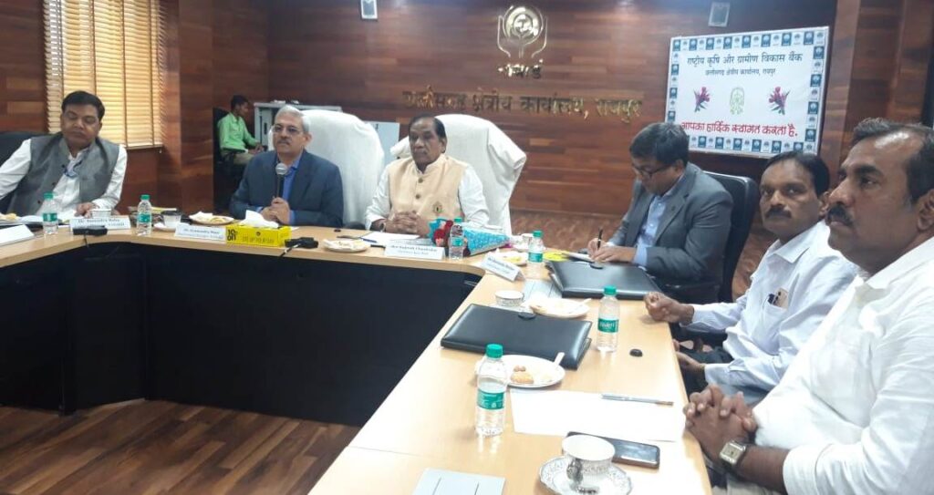 नाबार्ड के स्थापना दिवस कार्यक्रम में नाबार्ड महाप्रबंधक श्री सुरेन्द्र बाबु, नाबार्ड महाप्रबंधक श्री शीतांशु शेखर, नाबार्ड डीजीएम बी मिश्रा, नाबार्ड डीजीएम ध्रुब्राज सिंह, अपेक्स बैंक डीजीएम श्री भूपेश चंद्रवंशी, प्रबंधक श्री अभिषेक तिवारी तथा वीडियो कांफ्रेंसिंग के जरिये जिला सहकारी केंद्रीय बैंकों के अध्यक्षगण-रायपुर श्री पंकज शर्मा, अम्बिकापुर श्री रामदेव राम, बिलासपुर श्री प्रमोद नायक, राजनंदगाव श्री नवाज खान सहित मुख्य कार्यपालन अधिकारीगण – रायपुर श्री प्रभात मिश्रा, दुर्ग श्रीमती अपेक्षा व्यास, जगदलपुर श्री एस के जोशी, अम्बिकापुर श्री एस के वर्मा, राजनांदगांव श्री सुधीर सोनी तथा बैंकों के संचालक मंडल के सदस्यगण मौजूद थे।