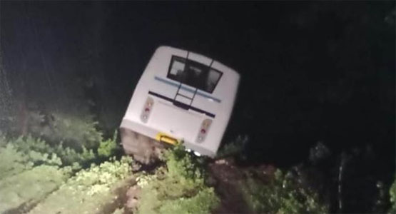 कोतवाली थाना अंतर्गत घोघरी घाट पर छात्राओं से भरी बस क्रमांक एमपी 04 पीए 4024 अनियंत्रित होकर खाई में गिर गई। बताया जाता है कि बस में रेडियंट कॉलेज जबलपुर की छात्राएं थी, जो कम्प्यूटर परीक्षा पूर्ण कर वापस शहडोल और अनूपपुर आ रही थीं। इसी बीच घोघरी घाट पर बस अनियंत्रित हुई और हादसे का शिकार हो गई। घटना 21 अगस्त की रात 10 बजे की बताई जा रही है। मिली जानकरी के अनुसार देर शाम शुरू हुई भारी बारिश के बीच घाट पर तेज और अनियंत्रित बस फिसल कर खाई में गिर गई है। हालांकि बस पलटी नहीं है लेकिन हादसे में तीन की हालत गंभीर बताई जा रही है। बस में ड्रायवर सहित कुल 26 महिलाएं और चार पुरुष मौजूद थे। घायलों को इलाज के लिए एम्बुलेंस की मदद से जिला अस्पताल उमरिया भेजा गया है। घटना की जानकारी पर भारी बारिश के बीच डायल 100 सहित कोतवाली पुलिस मौके पर पहुंची है और सभी छात्राओं को उमरिया लाने का प्रयास किया जा रहा है।