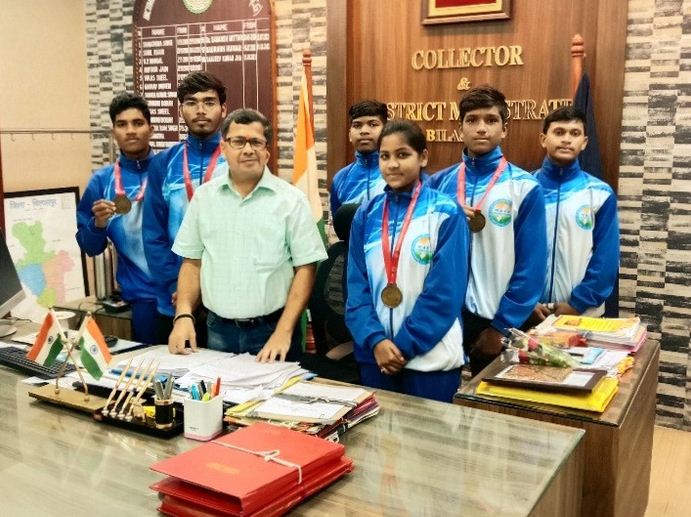 बिलासपुर, नेशनल किक बॉक्सिंग चैम्पियनशीप में जिले के खिलाड़ियों ने अपनी प्रतिभा का उत्कृष्ट प्रदर्शन करते हुए जिले और प्रदेश को गौरान्वित किया है। कोलकाता में आयोजित नेशनल चैम्पियनशीप में छत्तीसगढ़ की 50 सदस्यों की टीम ने भाग लिया था, जिसमें जिले के किक बॉक्सरों ने 5 स्वर्ण पदक के साथ 2 रजत पदक भी हासिल किया। इन खिलाड़ियों ने आज कलेक्टर श्री संजीव कुमार झा से सौजन्य मुलाकात की। कलेक्टर ने जिला कार्यालय में सभी खिलाड़ियों को सम्मानित कर उन्हें बधाई एवं शुभकामनाएं दी।